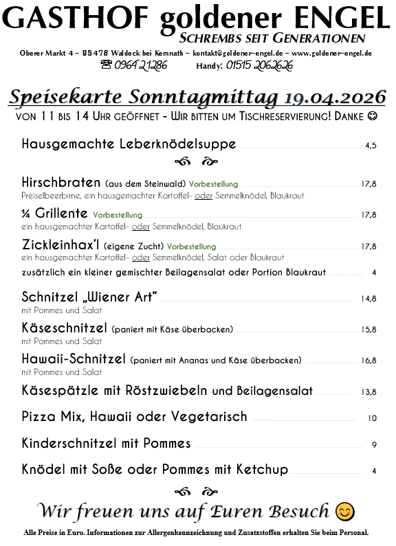 Dieses geschichtliche Erbe ist auch für uns in der 15. Generation Verpflichtung. Wir sind stets bemüht, das Erbe des „Engelswirtshauses“ fortzusetzen. Unser Haus soll Treffpunkt bleiben für Jung und Alt, für Einheimische und Gäste.